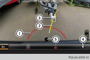 Cofać ostrożnie pojazd, aż dyszel 3 osiągnie czerwoną linię pomocniczą.